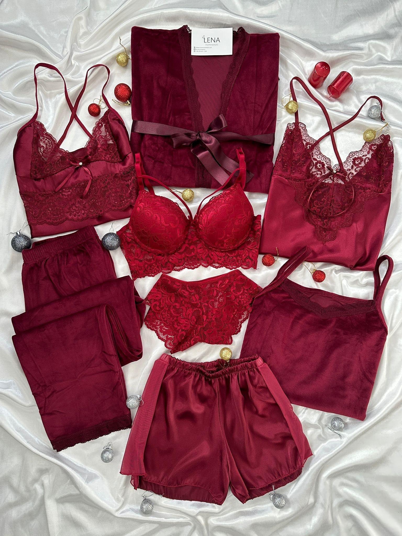 Bordo Elegant 8'li Kadın Çeyiz Seti