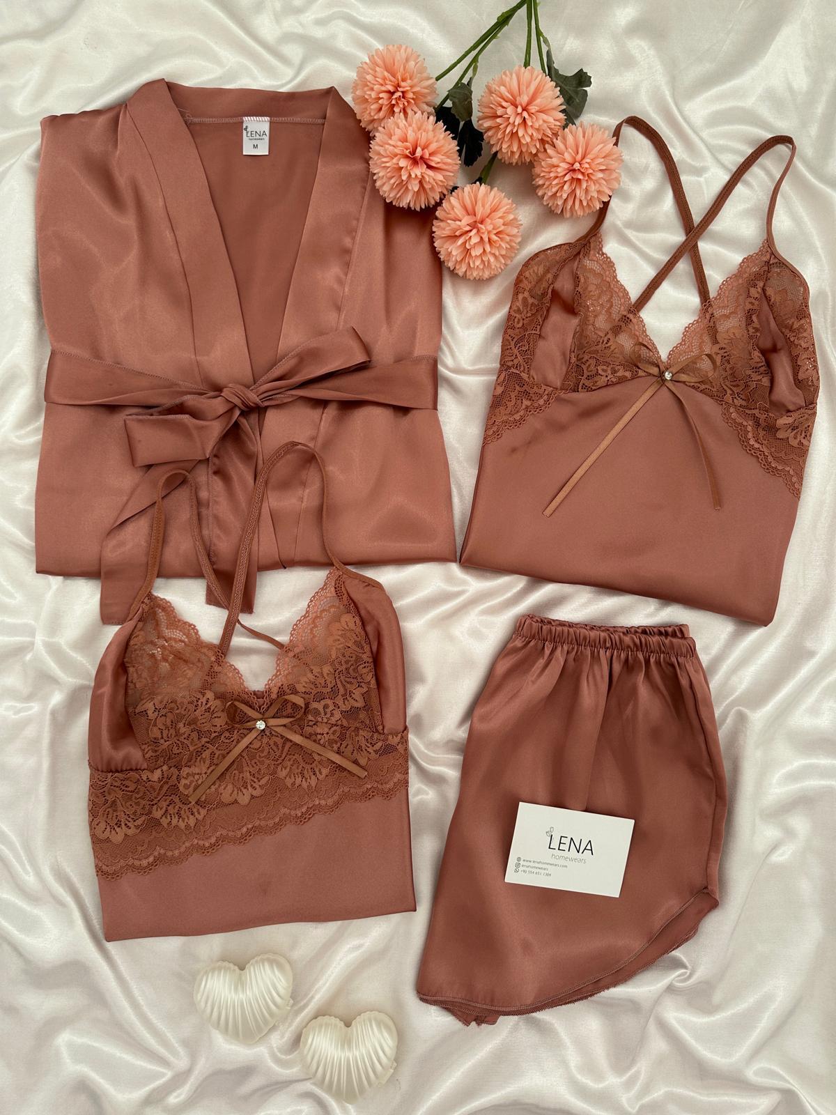 Yumuşacık  askılı saten gecelik, askılı üst,şort alt,