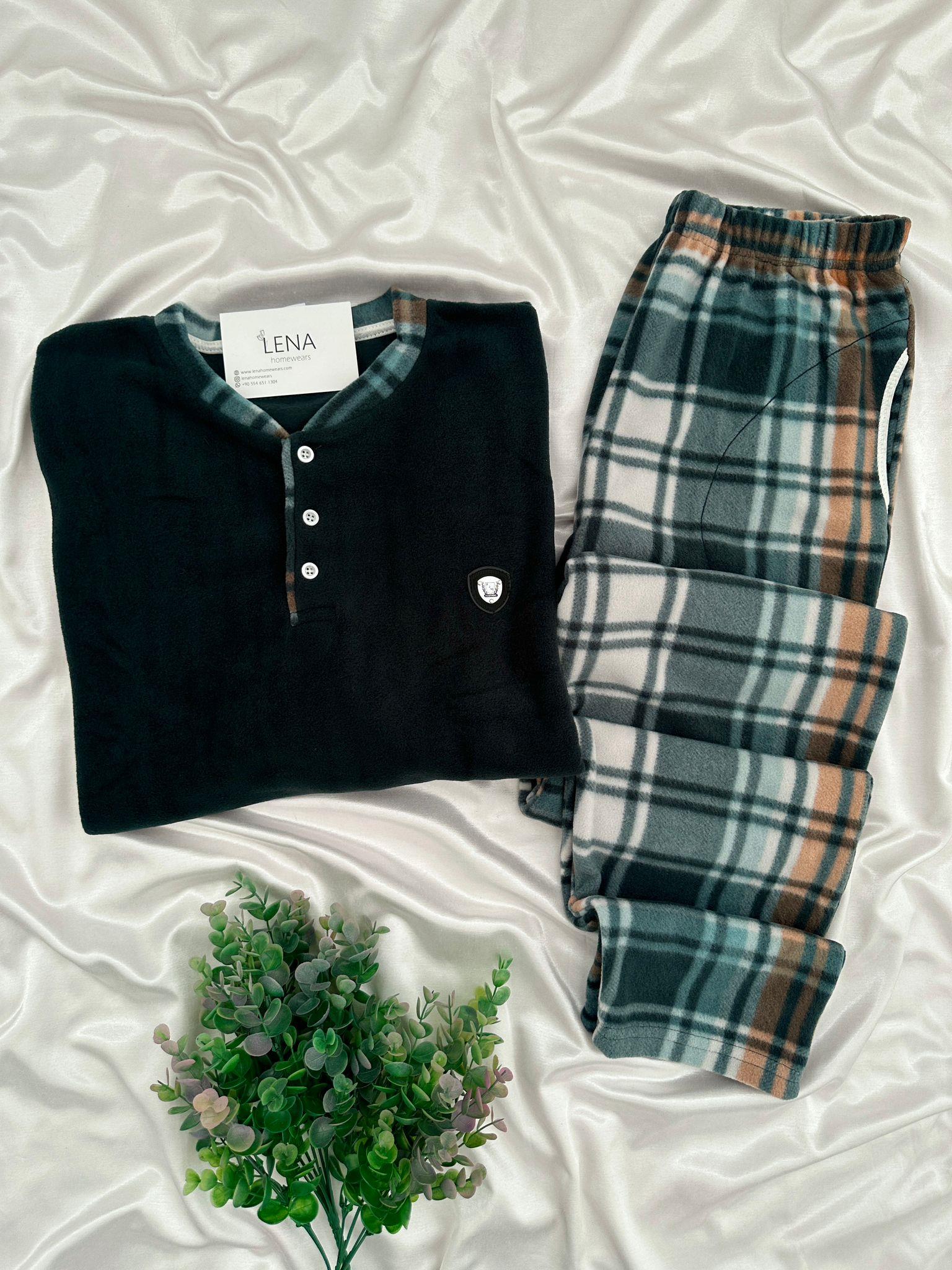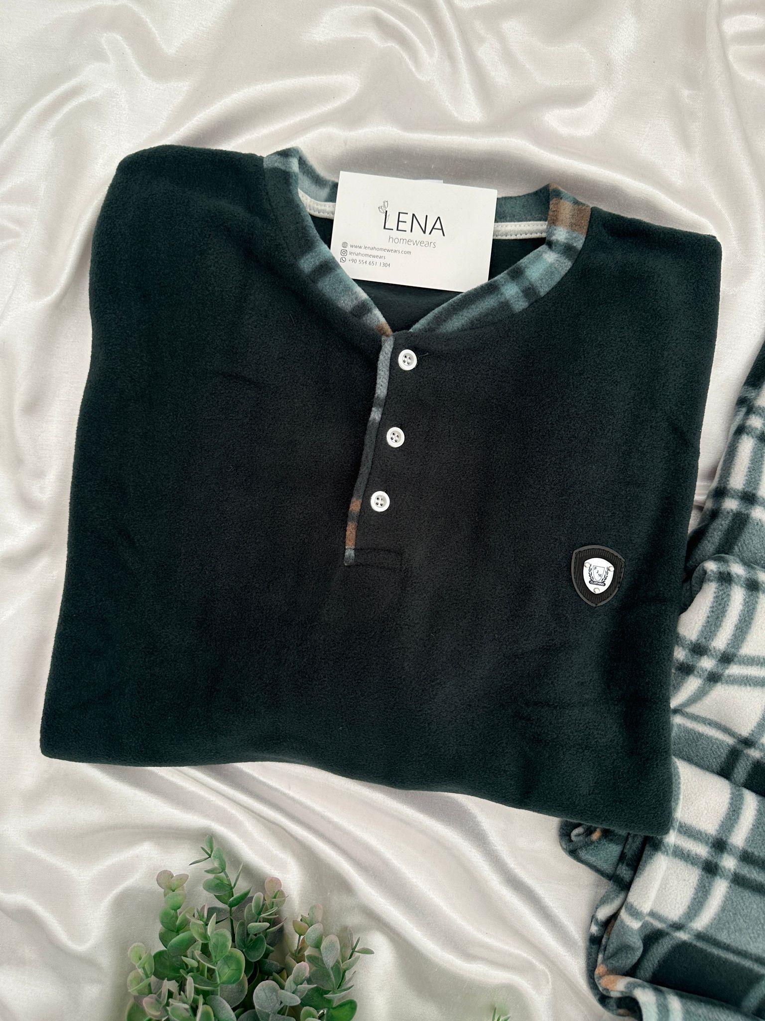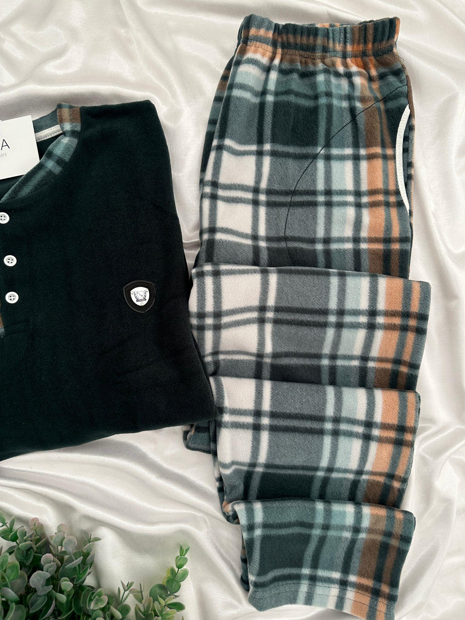 Yumuşacık ve sıcacık ✨Yeni Sezon Erkek Çağla renkli ekose desenli; üç düğmeli termal polar pijama takımı Alt paça Ceplidir