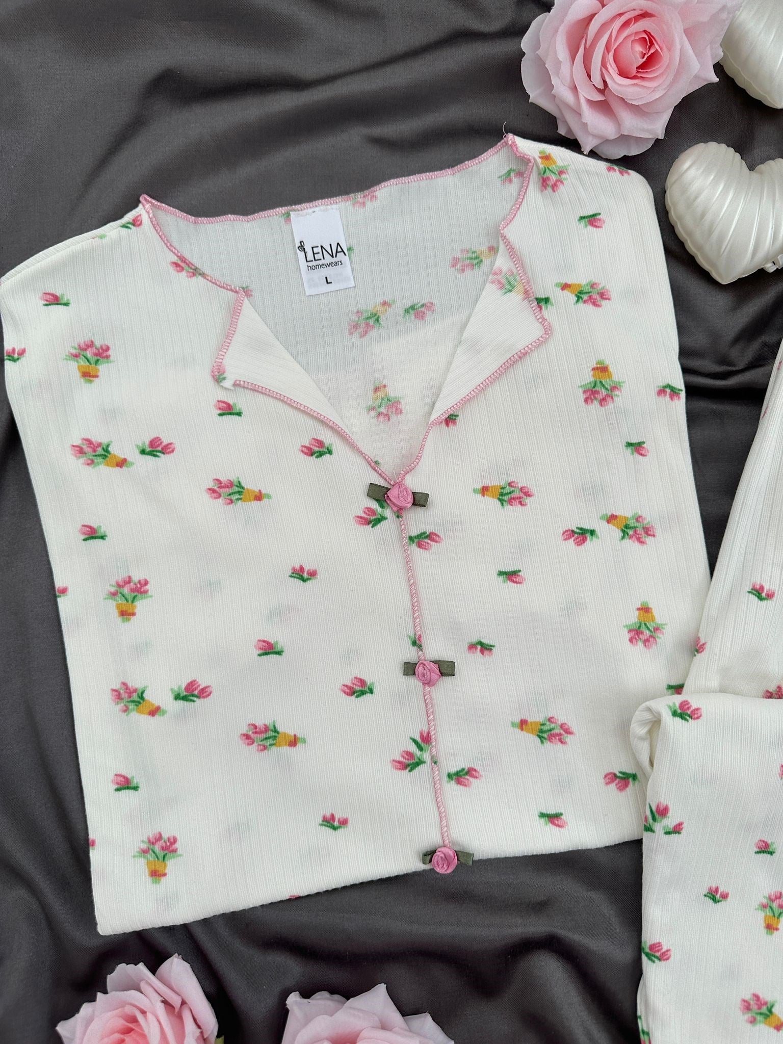 Ekru zemin üzerine işlenen Çiçek Buketi desenleri tatlı ve enerjik bir görünüm kazandırırken, önden yerleştirilen Çiçek aksesuar detayı modele özel bir şıklık katar.