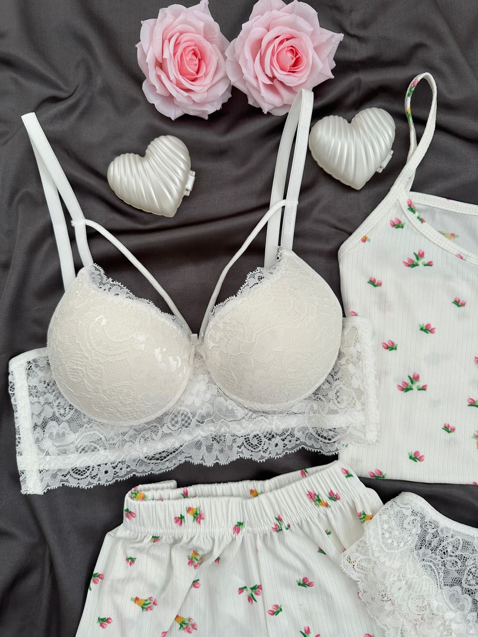 Çiçek Buketi desenli yumuşacık yeni sezon çok esnek çok rahat askılı üst ve şort alt