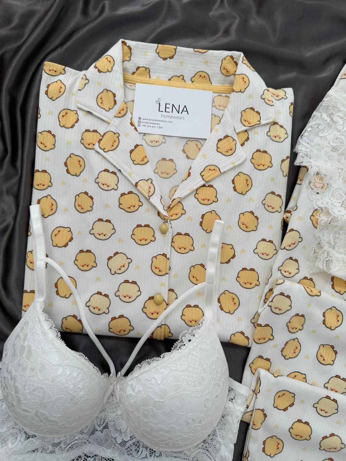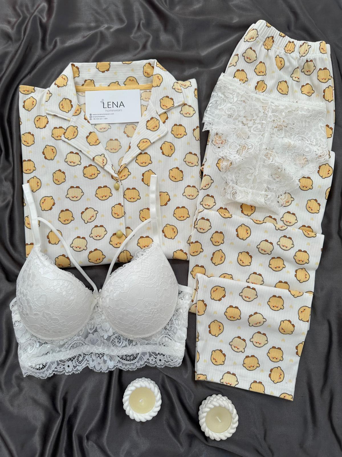 Özel üretim Berlin kumaş 👌 Uzun kollu uzun paçalı yumuşacık sıcak tutan ama bunaltmayan yeni Berlin kumaş pijama takımı ve destekli ekru dantel detaylı sütyen takımı ✨