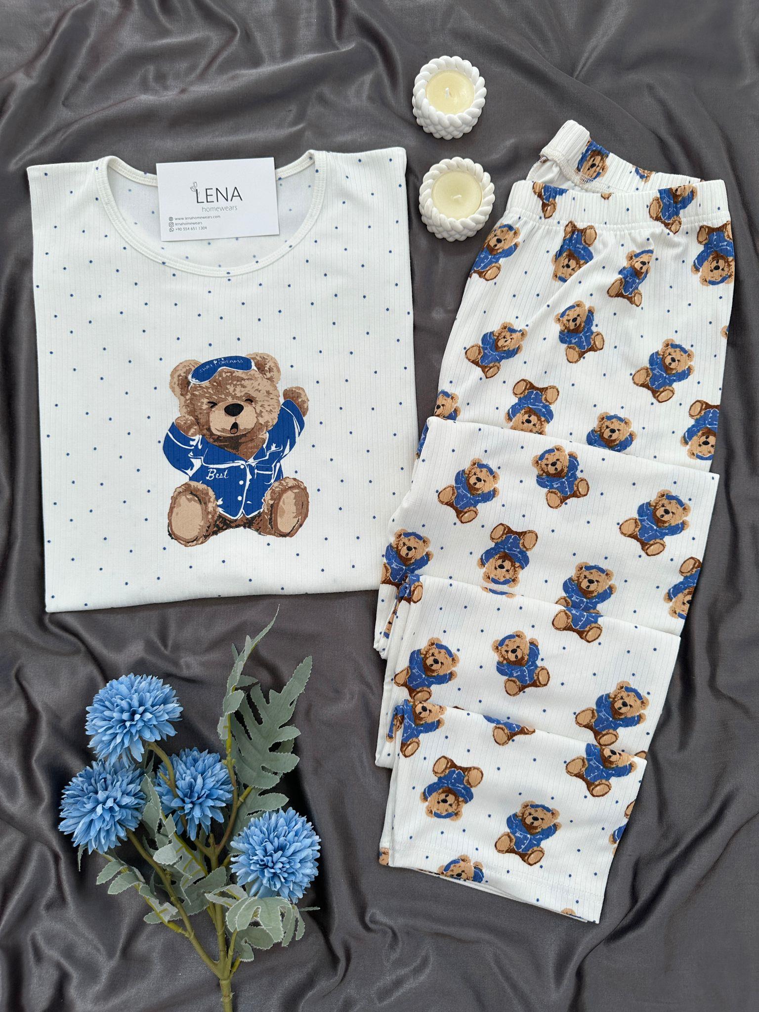 Ekru Ayıcık Desenli Bisiklet Yaka Pijama Takımı – Berlin