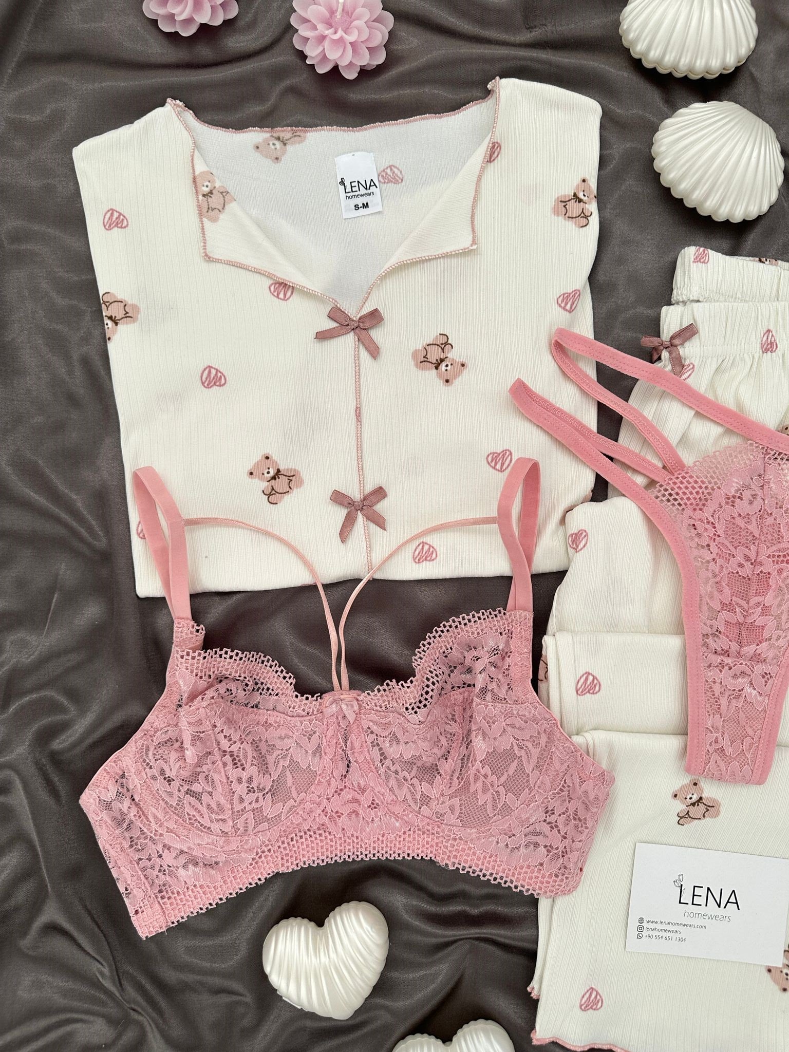 Kısa kollu uzun paçalı yumuşacık tırıl tırıl terletmeyen rahat ve esnek yeni oslo kumaş pijama takımı ve Desteksiz ip detaylı Pembe sütyen takımı ✨