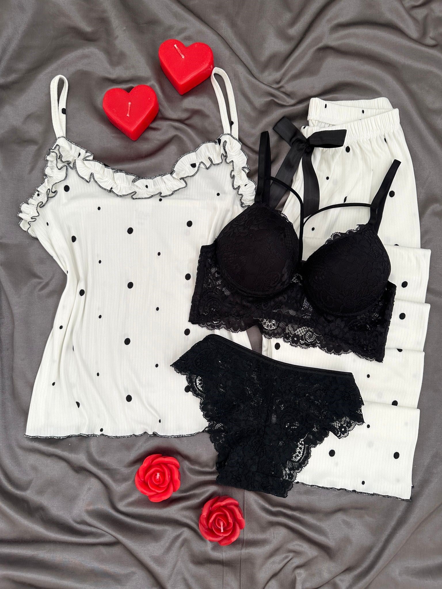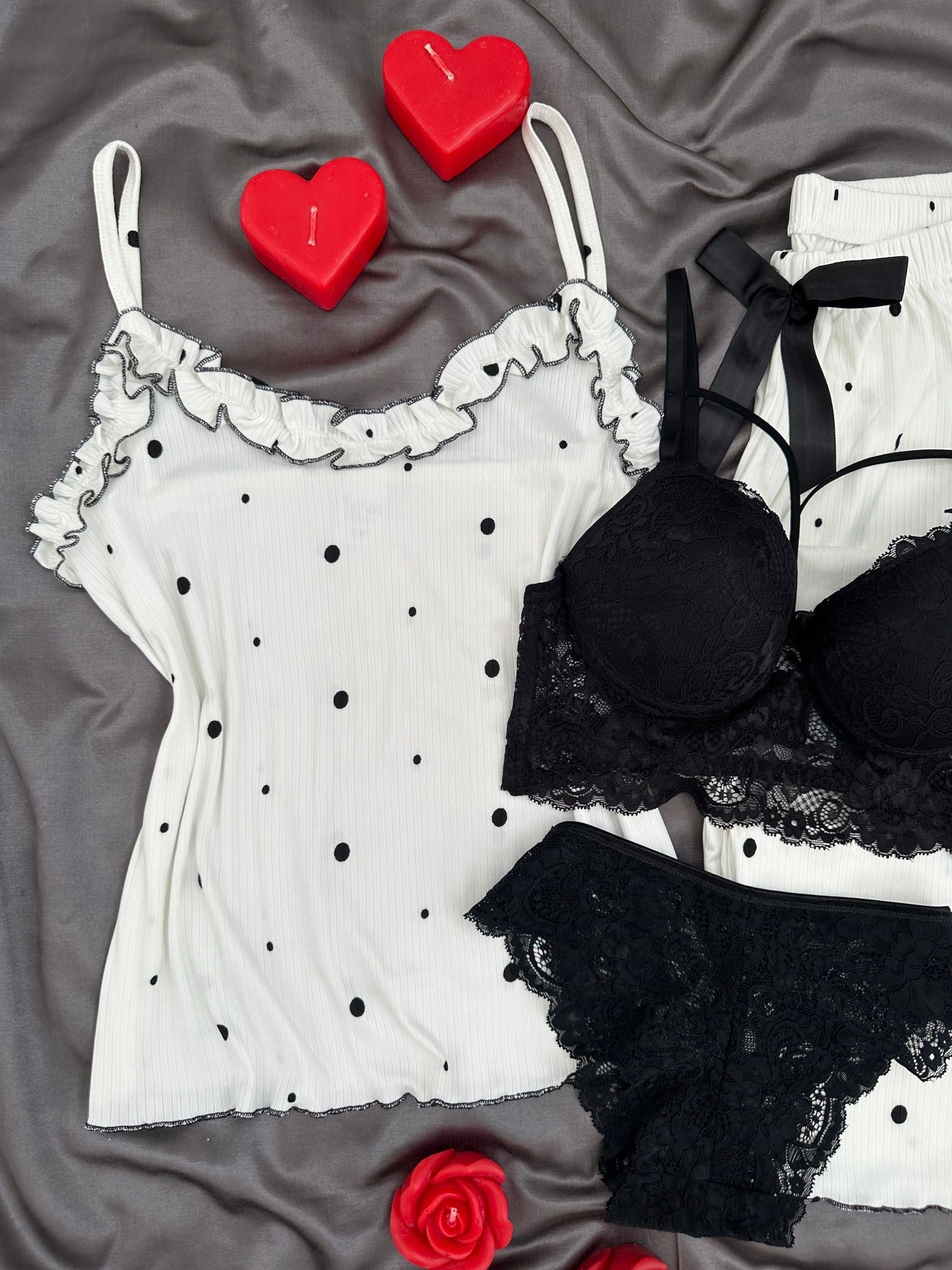 Ekru Benekler Dörtlü Askılı Pijama Takımı