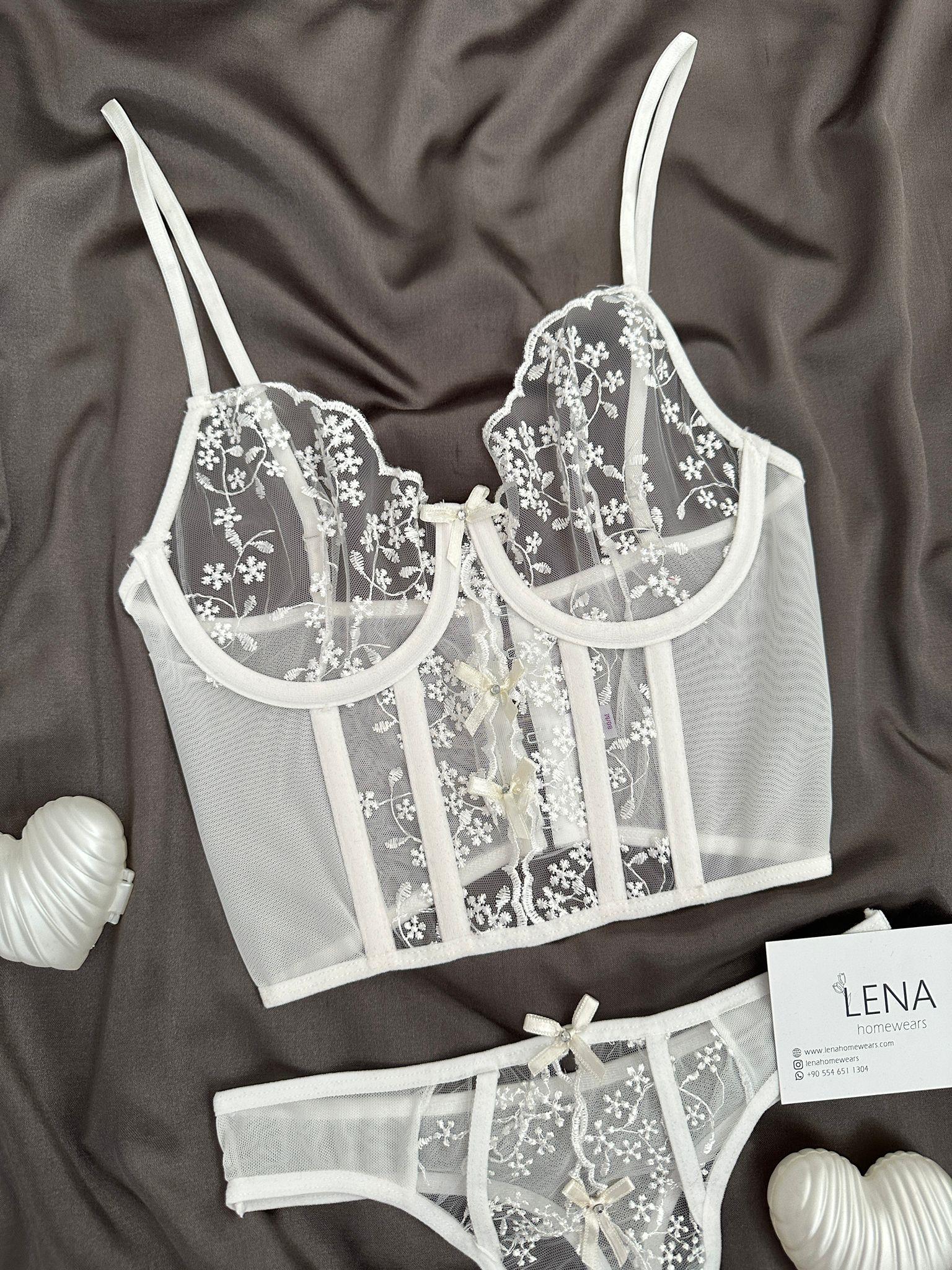özel siyah tül ve dantel detaylı transparan bralet ve tanga
