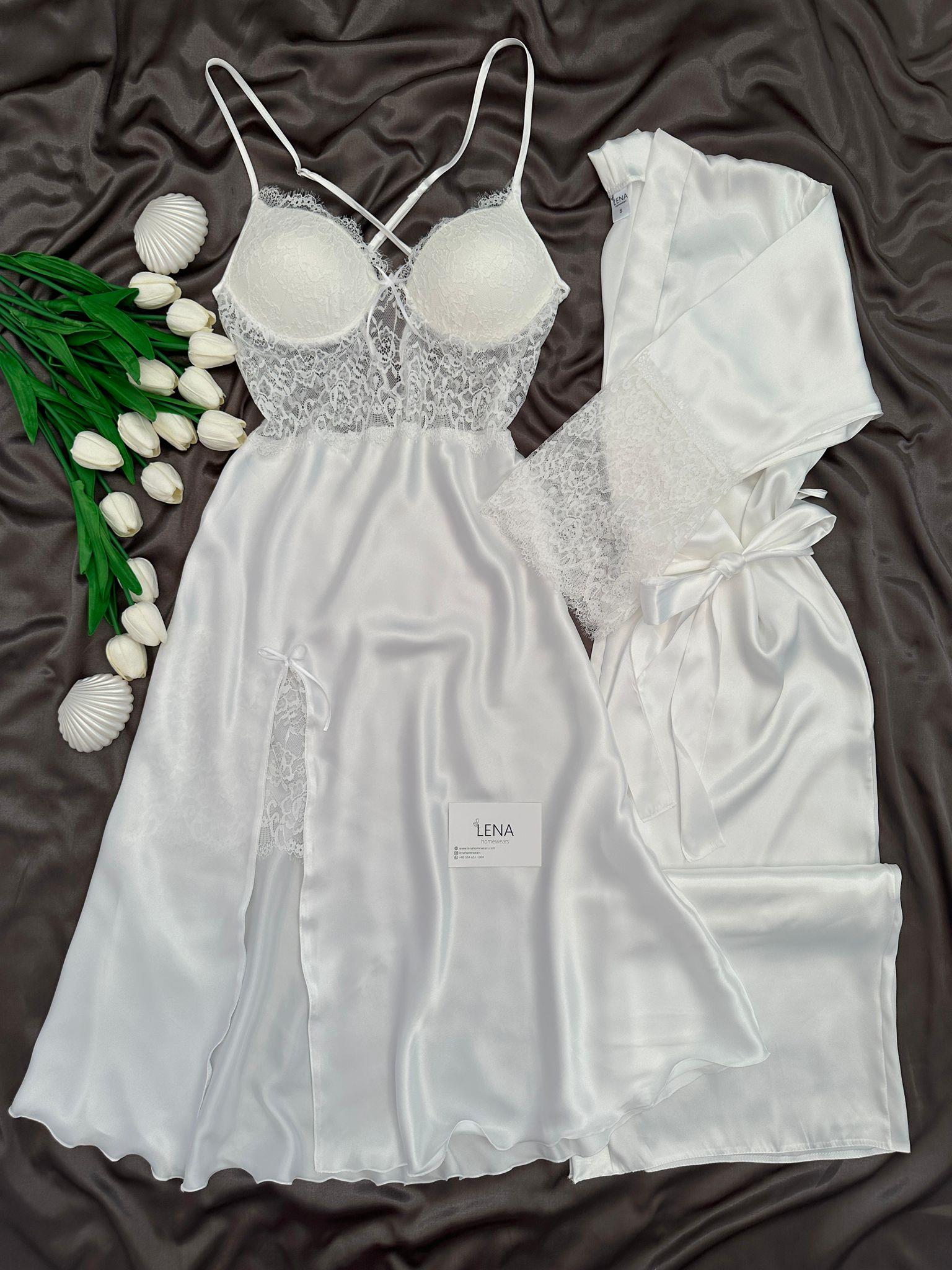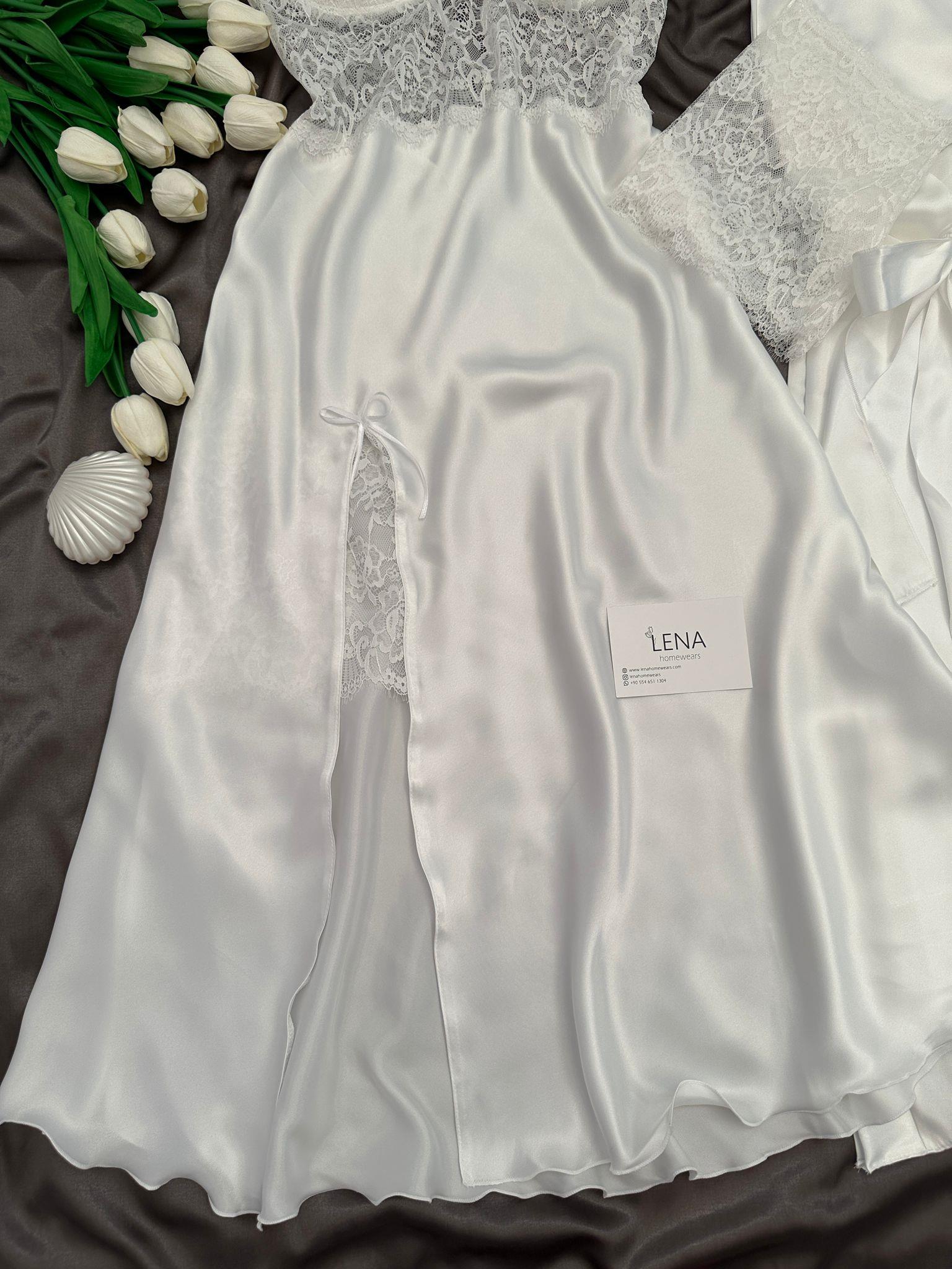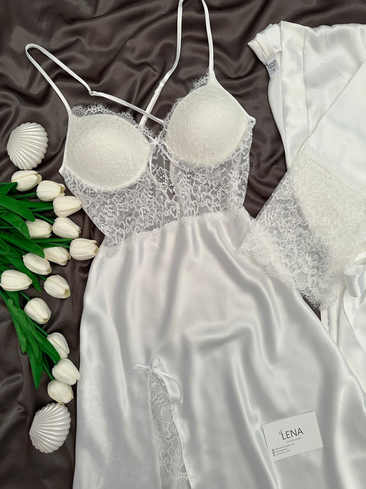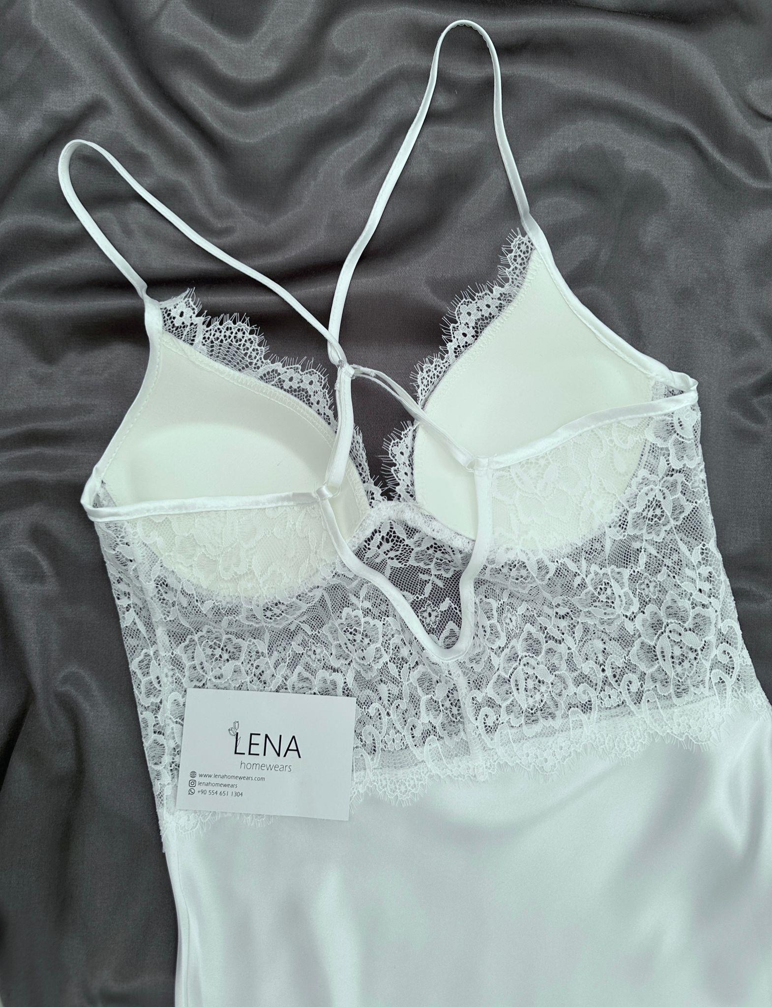 Özel üretim -tam istediğiniz gibi Derin Yırtmaç İpeksi Saten Destekli göğüs kapları Ayarlanabilir saten askılar V kesim sırt detayı Dantel göğüs altı A kesim uzun gecelik Yırtmaç altında dantel detayı Kolları dantel detaylı uzun sabahlık & Kuşak