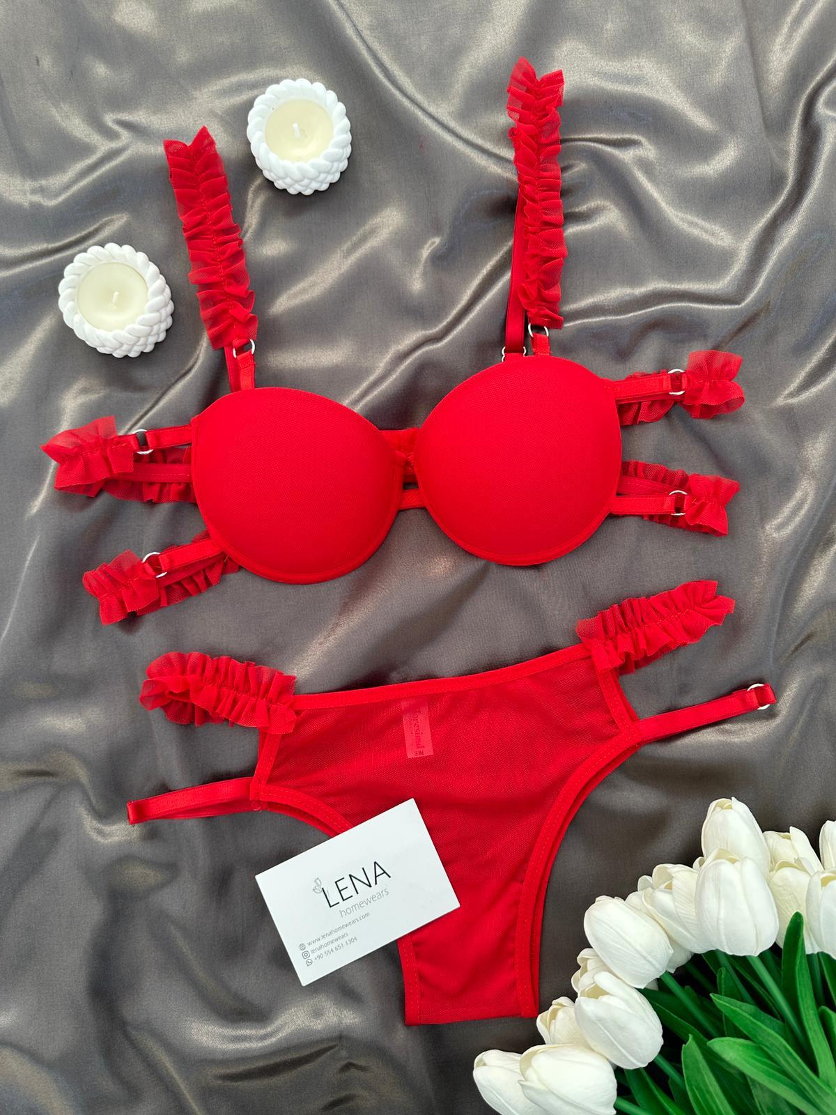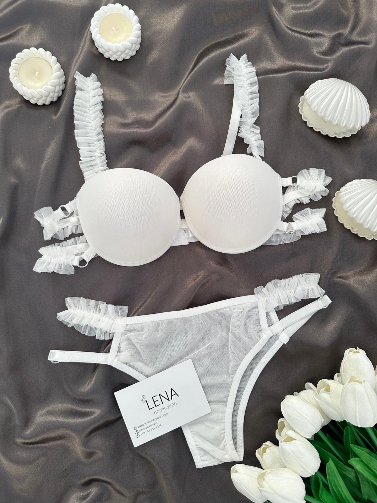 Destekli fırfır detaylı sütyen ve iç çamaşırı 75-80-85-90 beden / b kap / destekli
