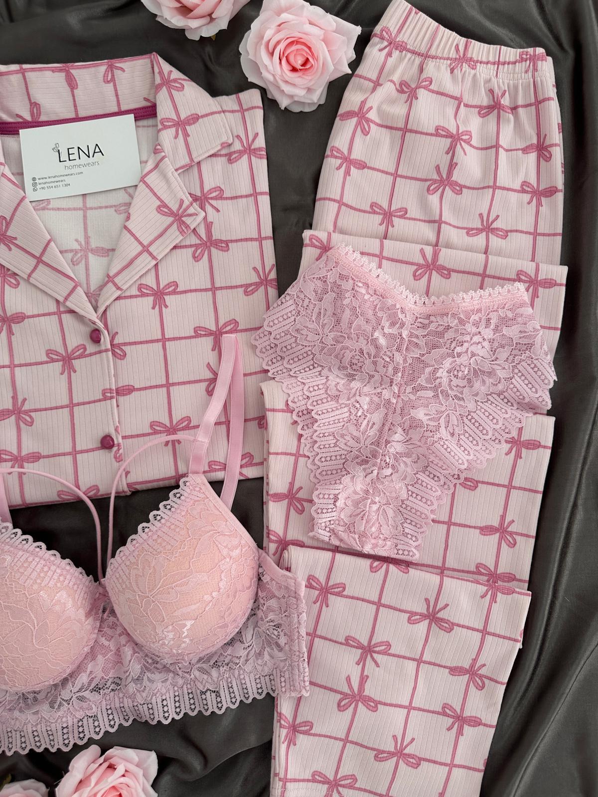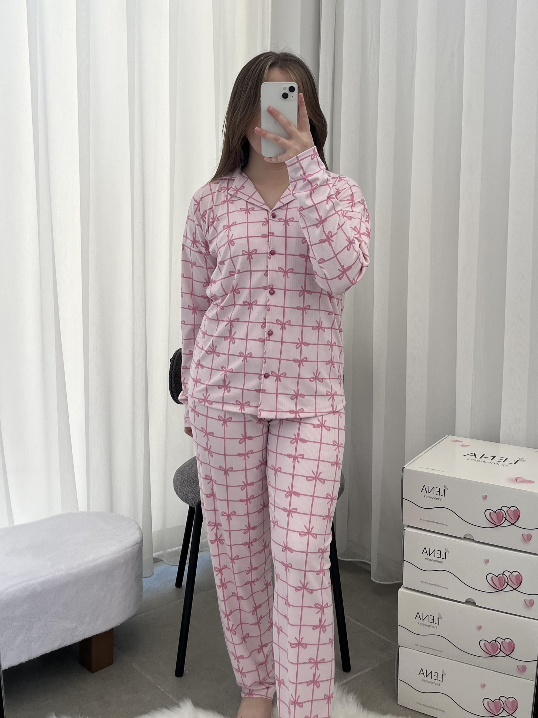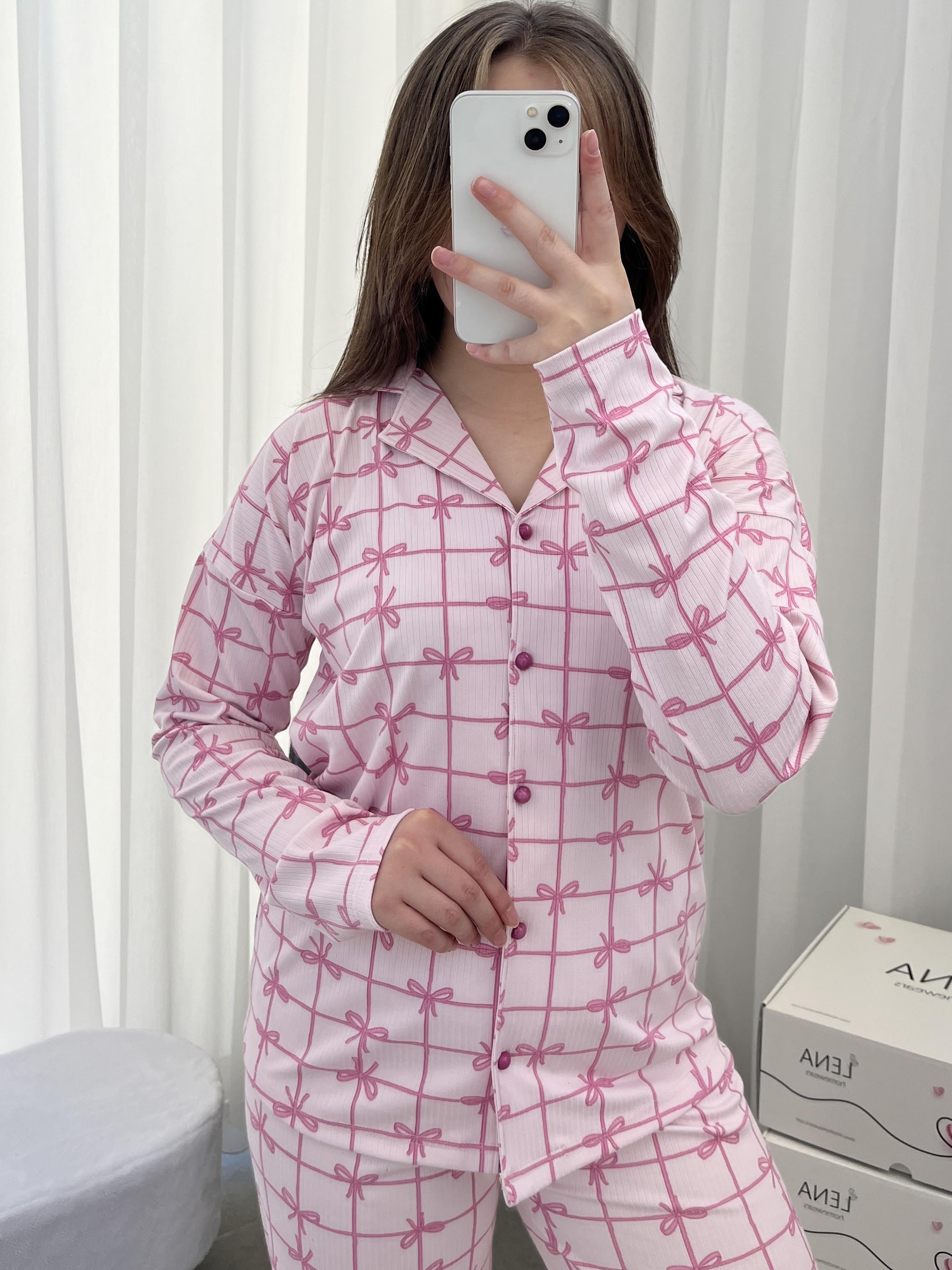Özel kumaş ✨ Yeni Sezon ✨ Yumuşacık Waffle kumaş fermuar detaylı kiraz baskılı uzun kollu uzun paçalı pijama takımı Kırmızı destekli ip detaylı sütyen takımı ile birlikte ❤️