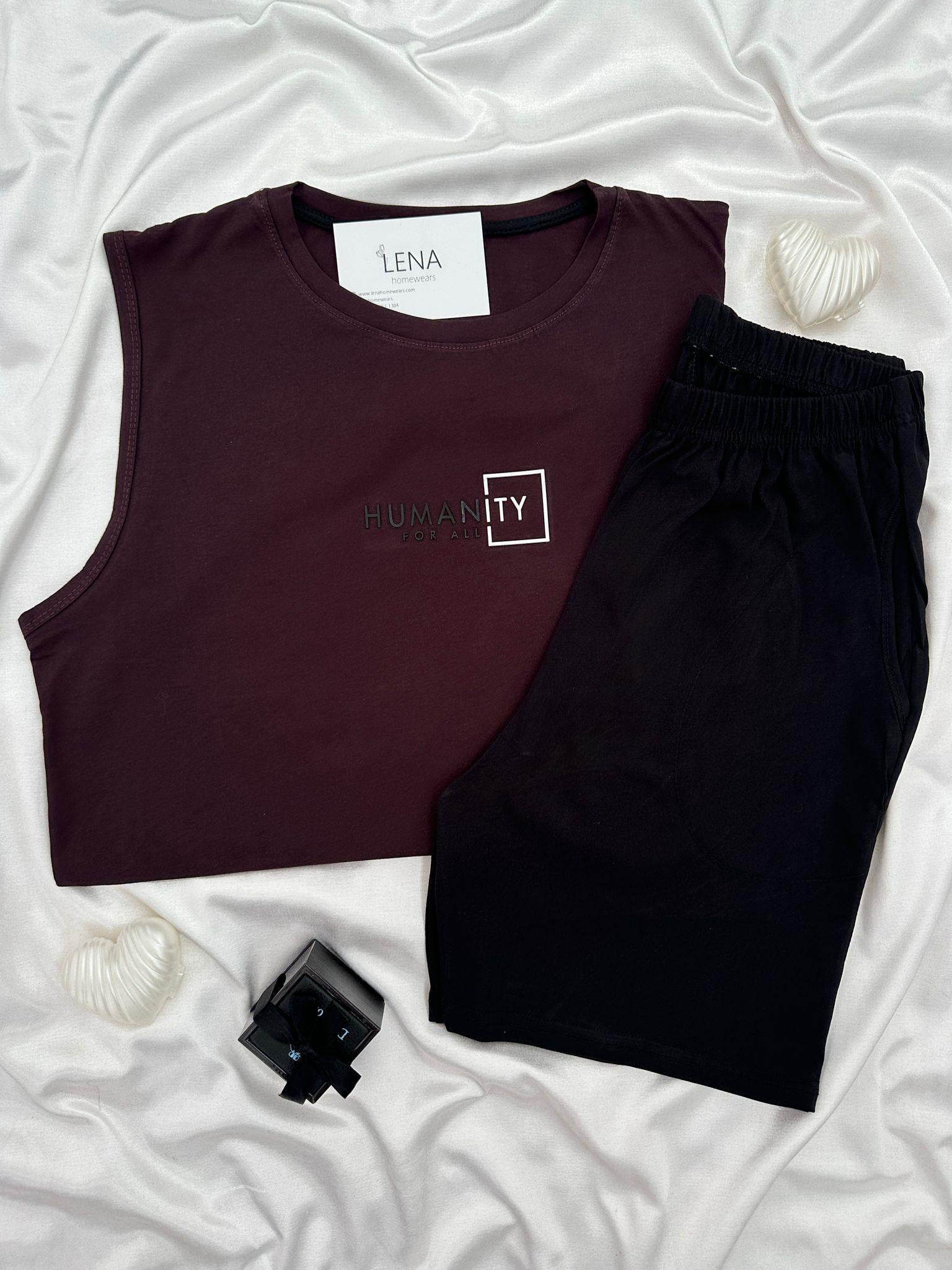 Humanity Bordo Kolsuz Erkek Şortlu Pijama Takımı