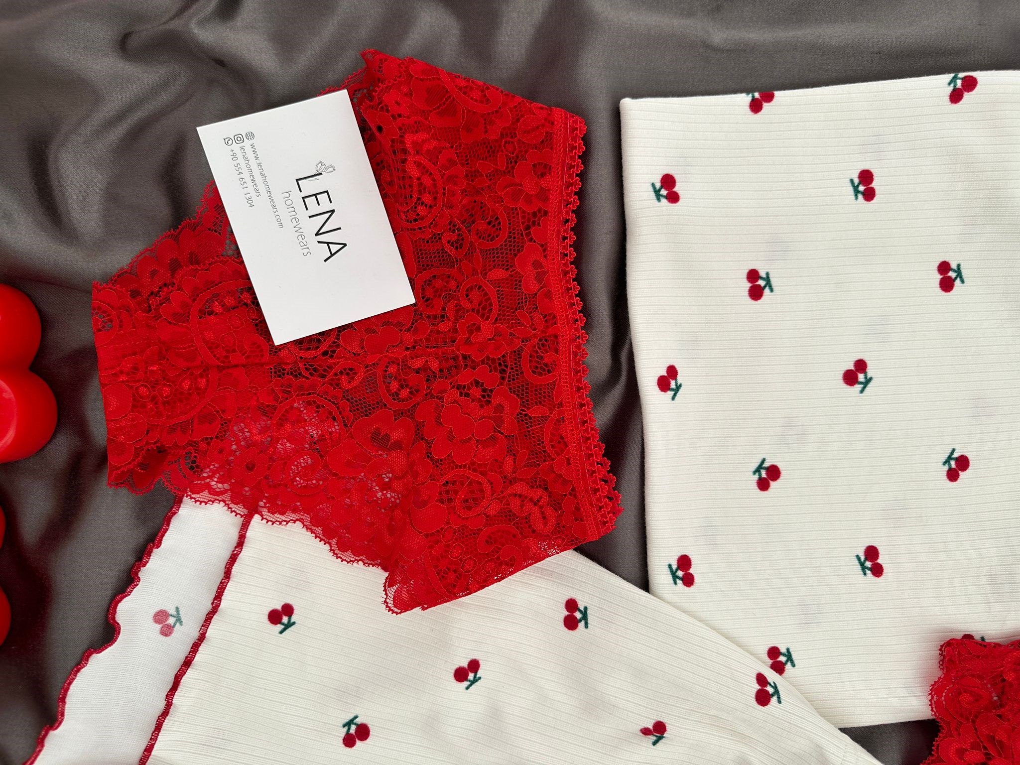 Kiraz Desenli desenli yumuşacık yeni sezon çok esnek çok rahat askılı üst ve şort alt