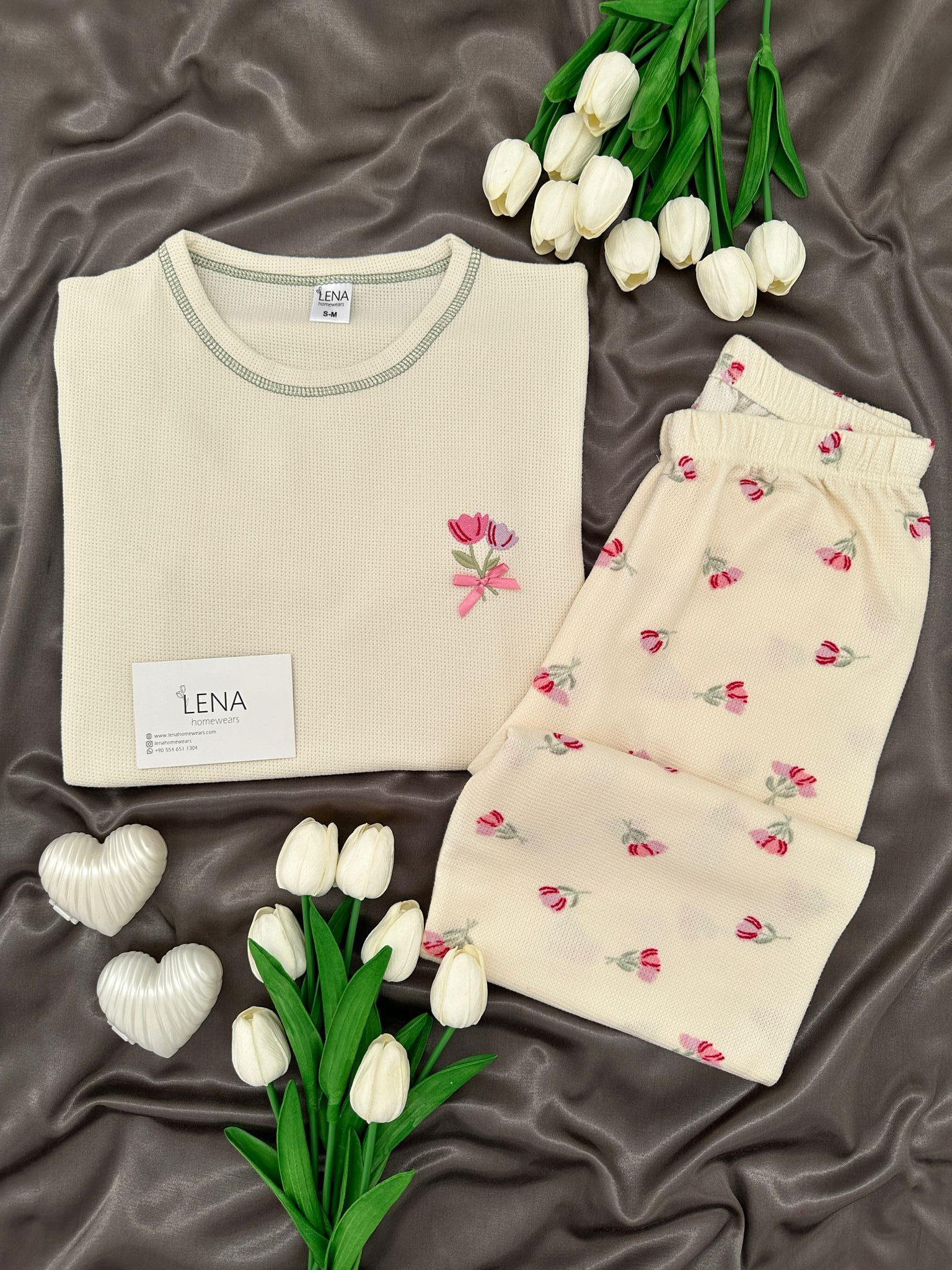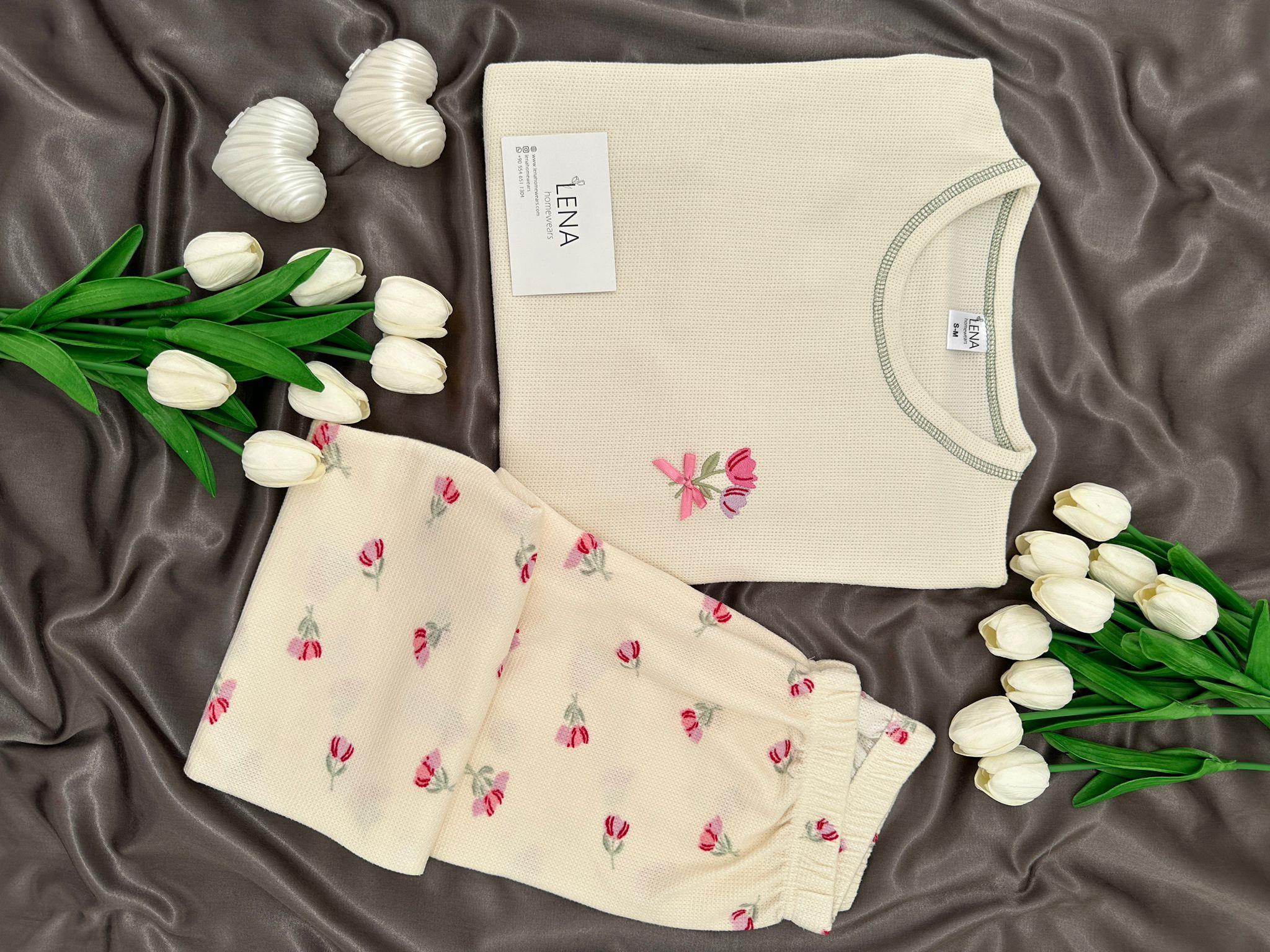 yeni waffle kumaş pijama takımı ve destekli korseli ithal çiçek işleme detaylı sütyen takımı ✨ Sm,L,XL,XXL beden / normal kalıp/ waffle kumaş