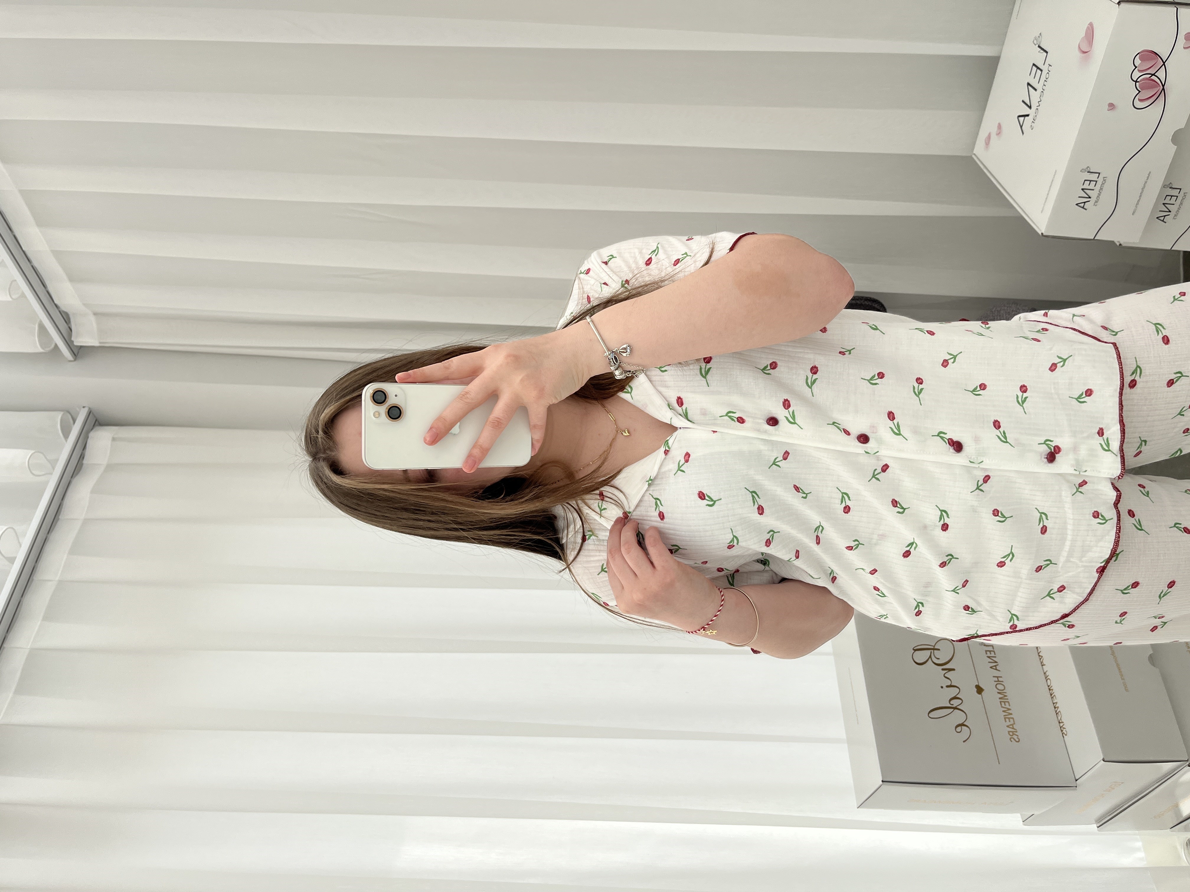 Yumuşacık lale desenli kısa kollu uzun paçalı boydan düğmeli pijama takımı