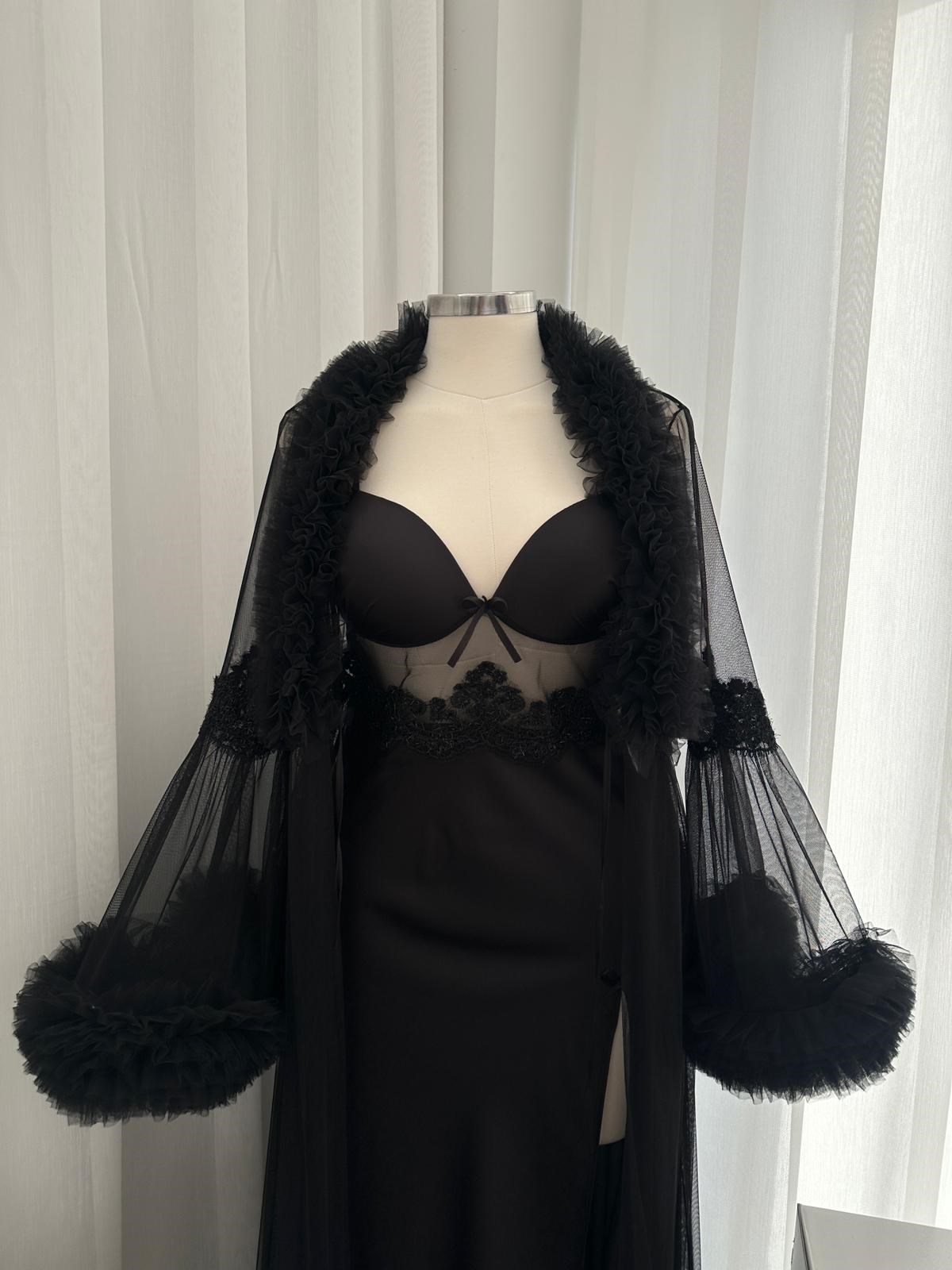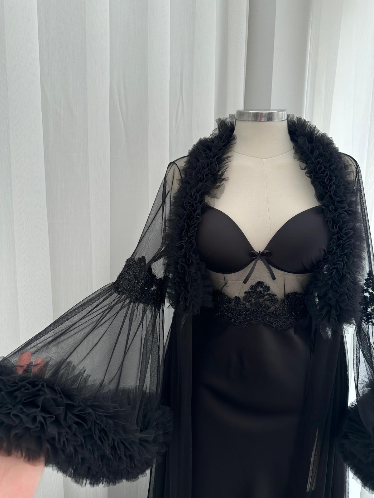 Lenna Siyah Tül İkili Özel Gecelik Seti  Özel Tasarım