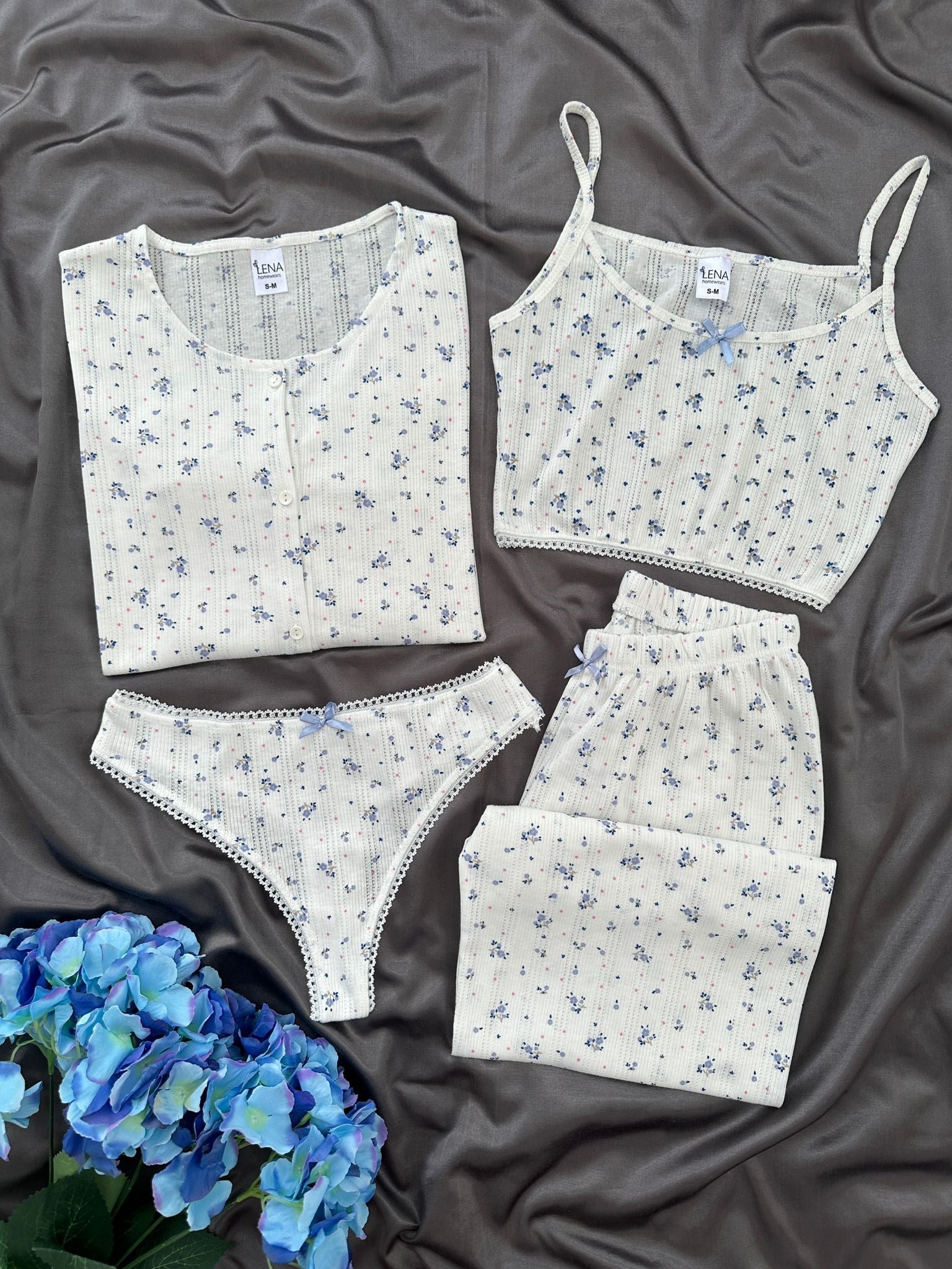 Mavi Gül 4'lü Pamuk Pijama Takım