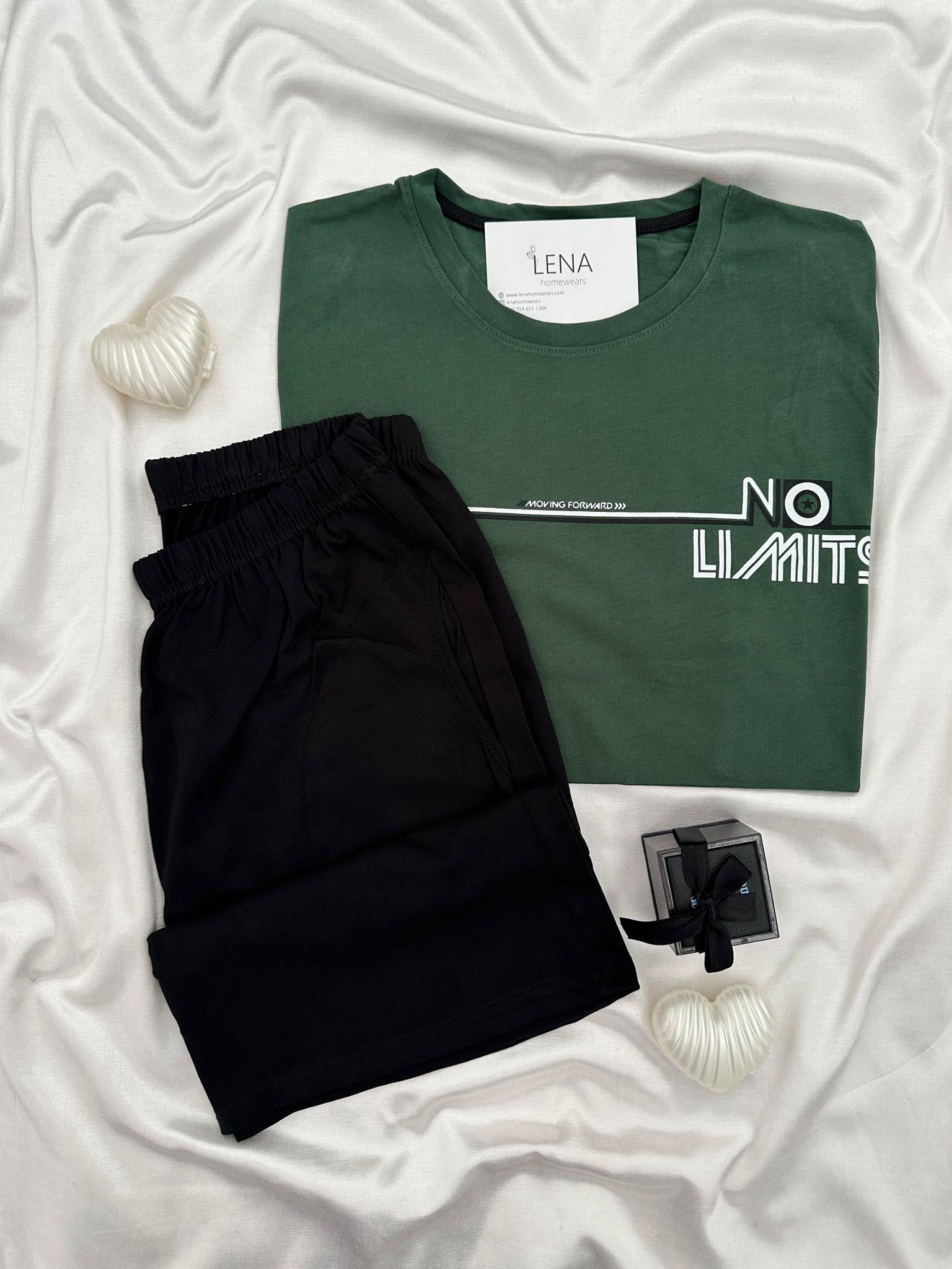 No Limits Yeşil Pamuk Erkek Şortlu Pijama Takımı