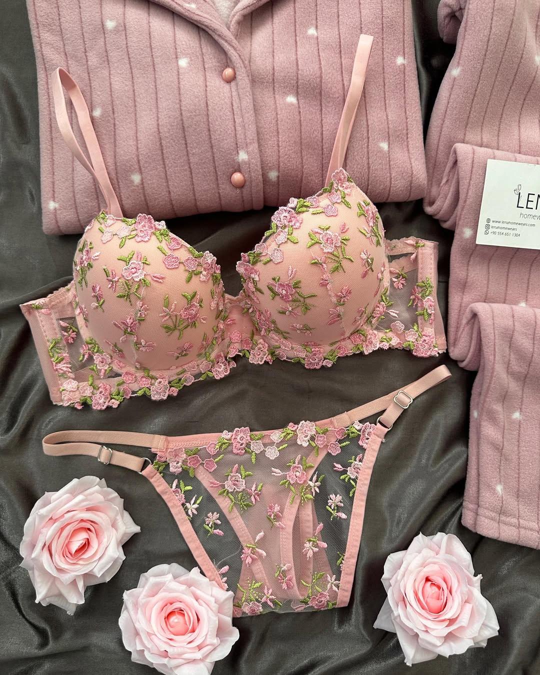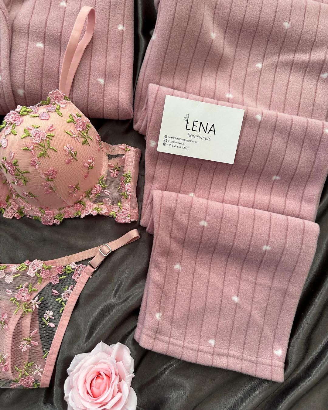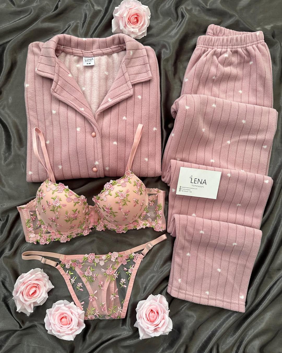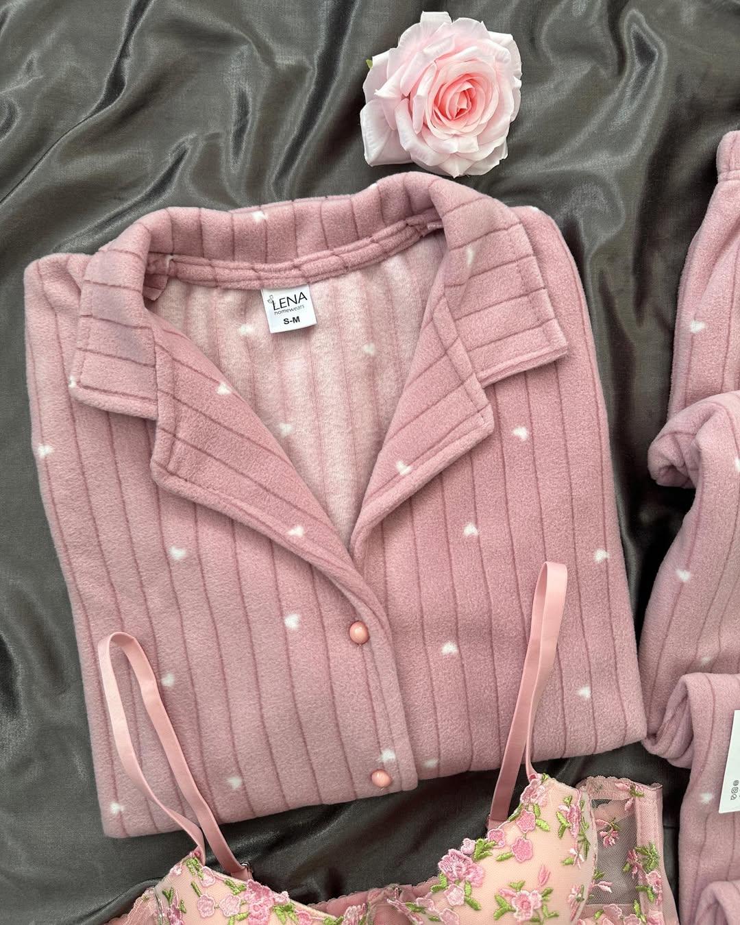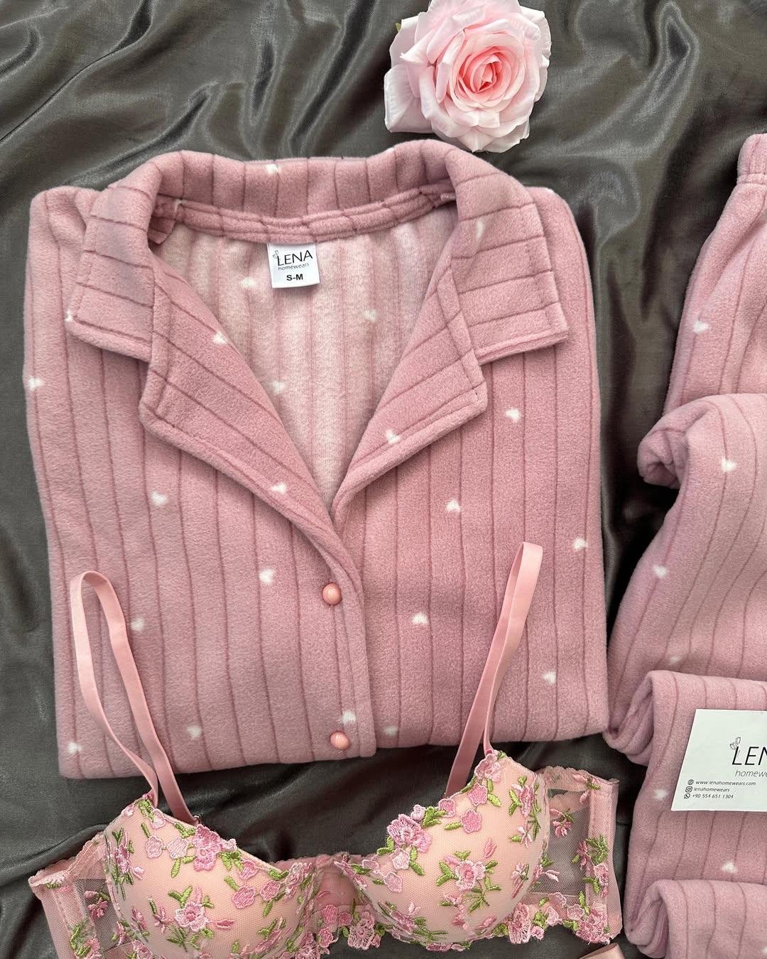Yumuşacık kalp desenli düğmeli uzun kollu üst ve uzun paçalı alt pijama takımı İthal çiçek işlemeli özel tasarım destekli ayarlanabilir askılı sütyen ve ayarlanabilir iç çamaşırı ile birlikte 🌸 Sm,L,XL,XXL beden /dar kalıp /fitilli polar kumaş 75-80-85-90/ tam kalıp /b kap /destekli