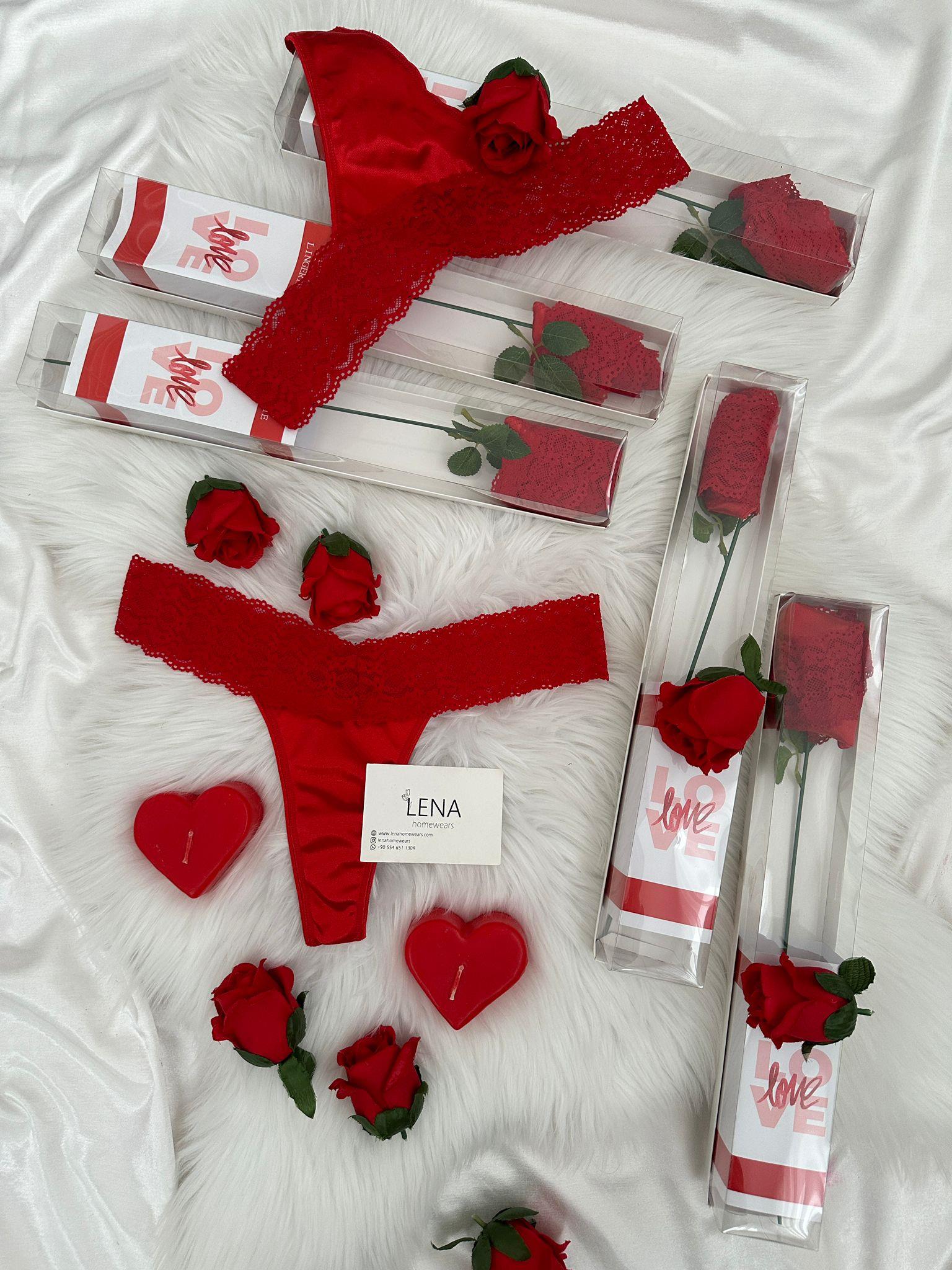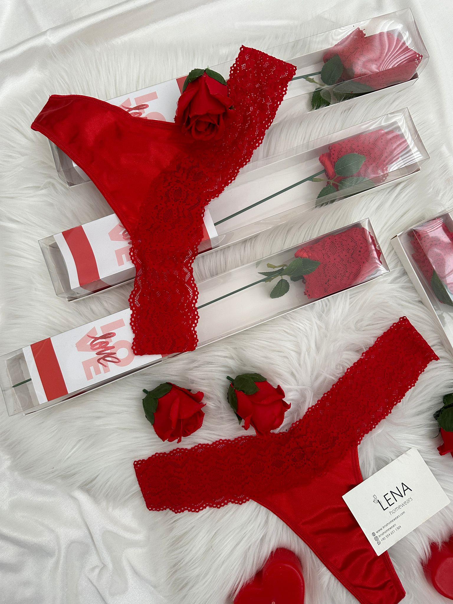 M-L-XL kırmızı dantel detaylı gül kutusunda tanga
