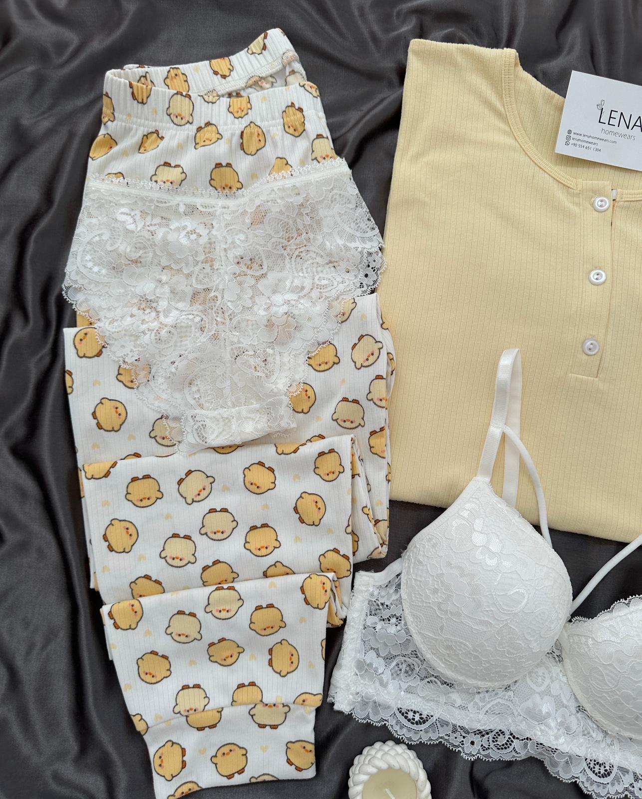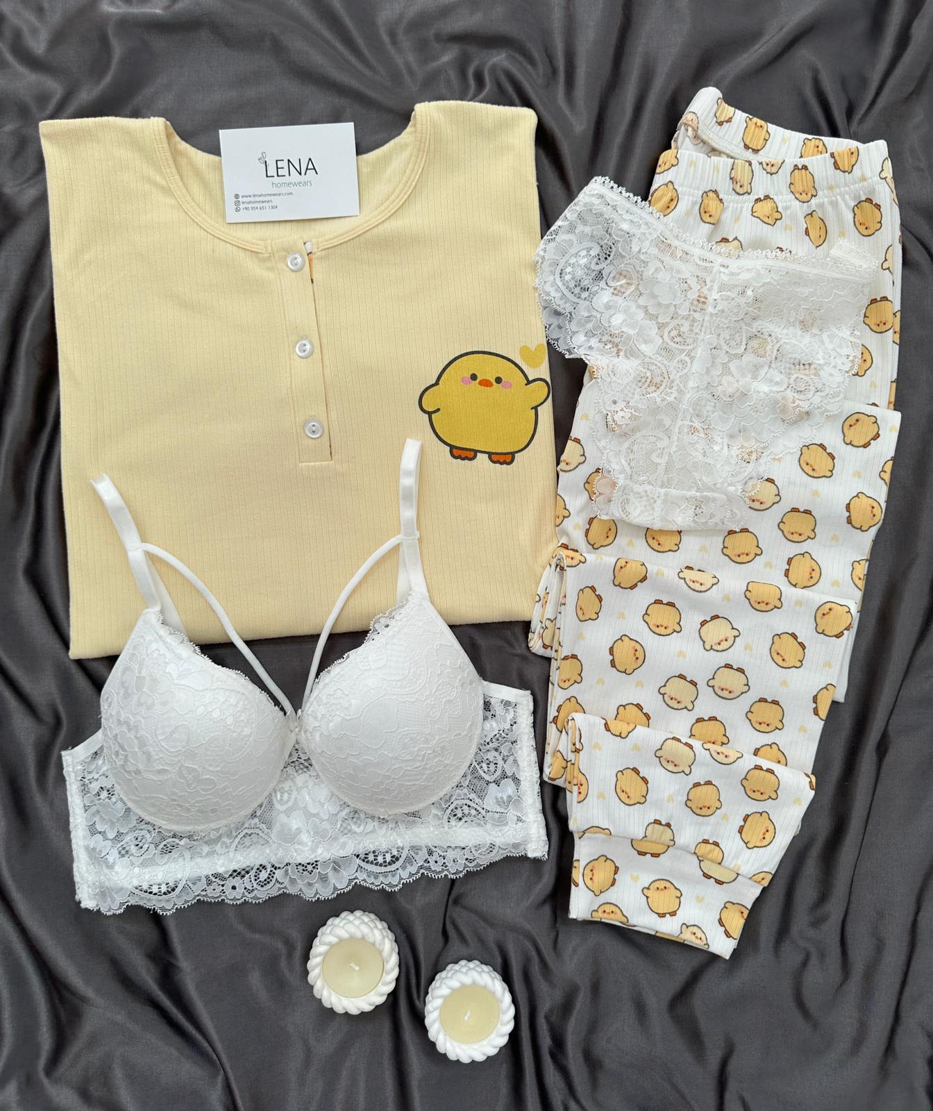 Seeyu Civciv Desenli Dörtlü Pijama Seti