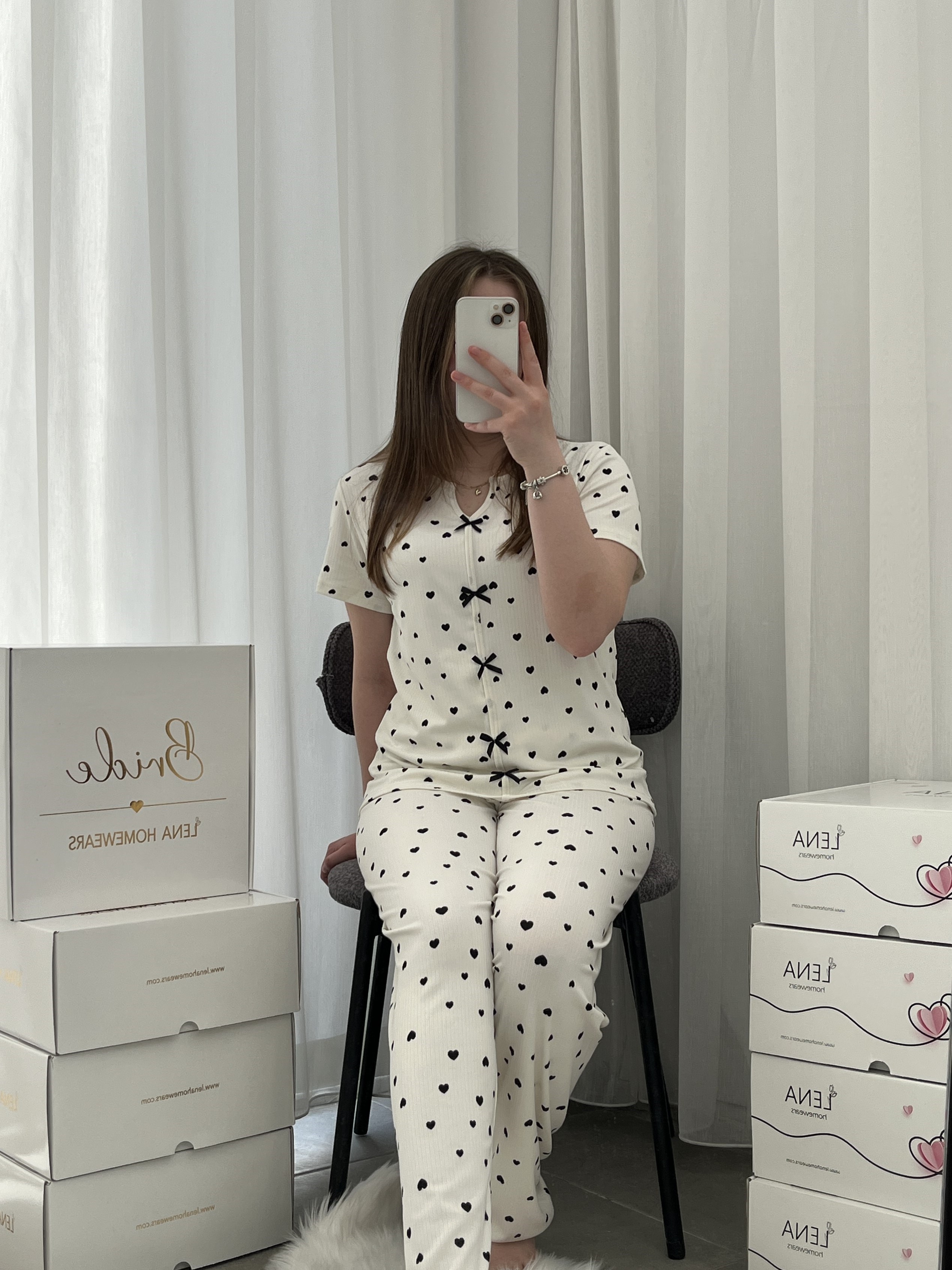 Kısa kollu uzun paçalı yumuşacık tırıl tırıl terletmeyen rahat ve esnek yeni oslo kumaş pijama takımı ve destekli ip detaylı Siyah sütyen takımı ✨