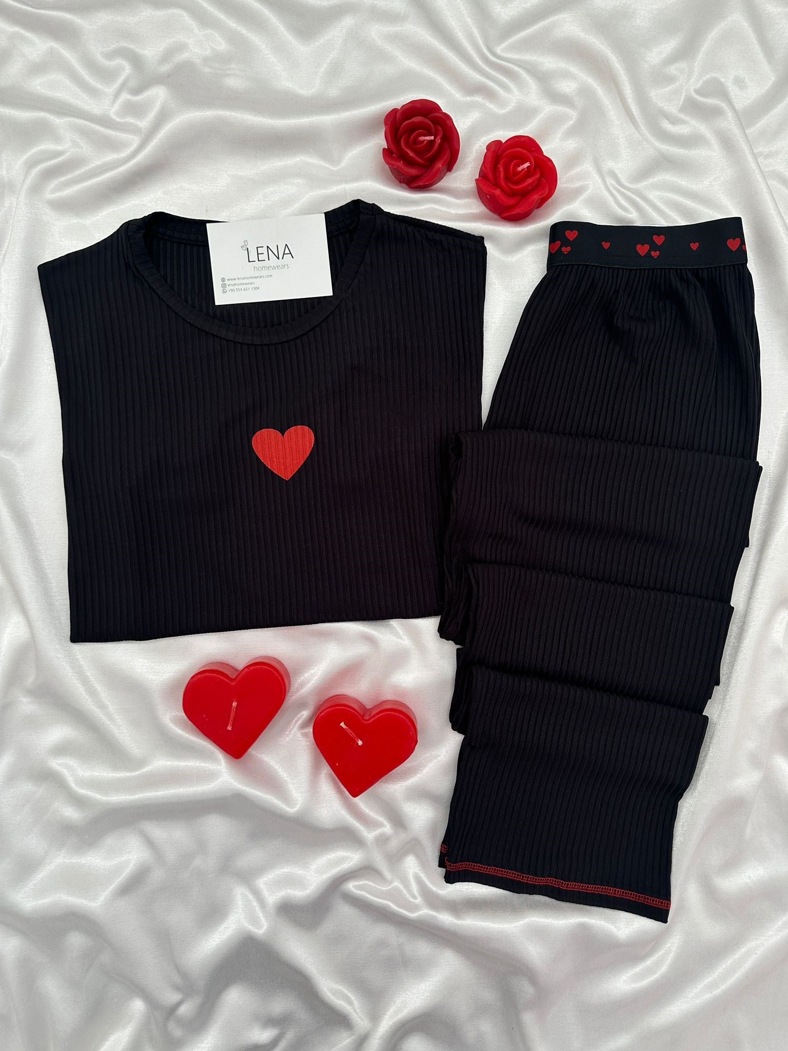 Siyah Miray Kısa kollu Pijama Pijama Takımı