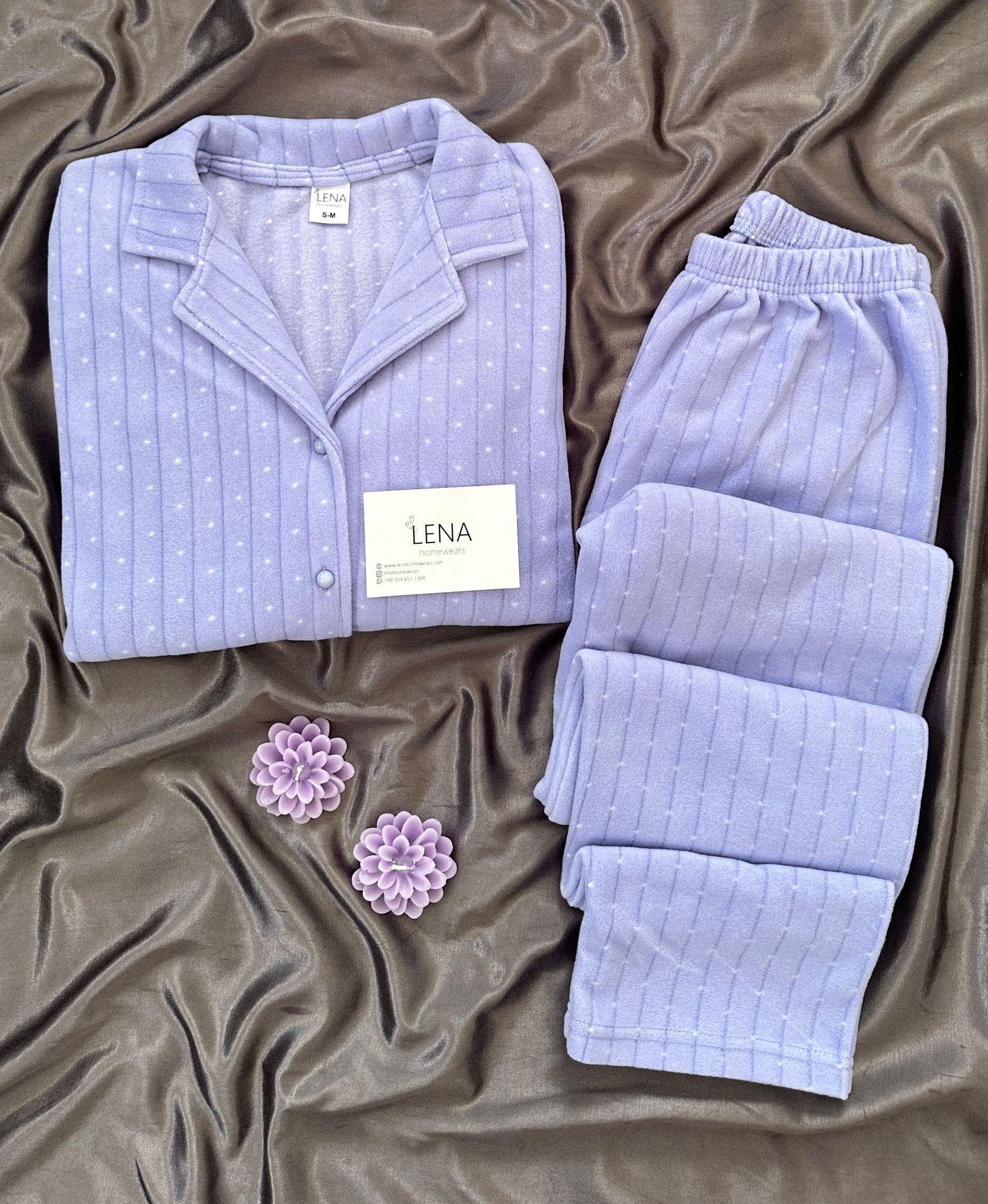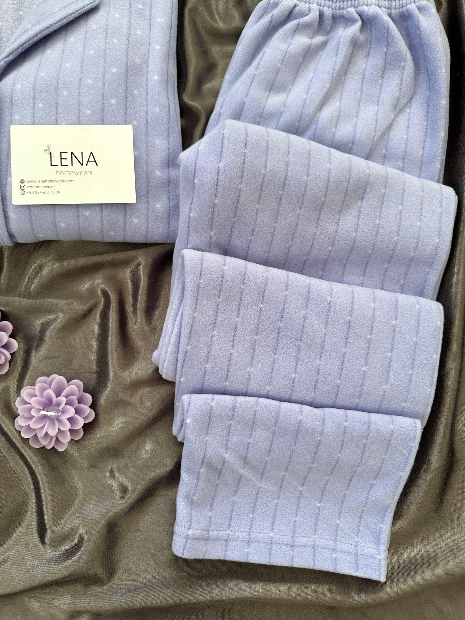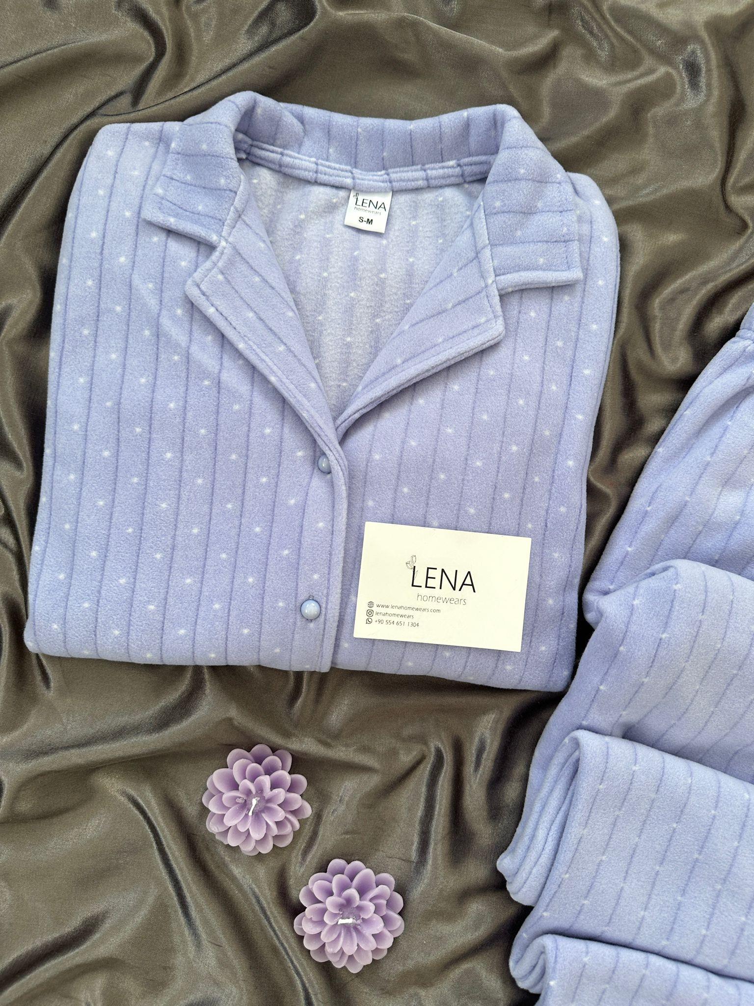 Yumuşacık fitilli polar düğmeli uzun kollu üst ve uzun paçalı alt pijama takımı